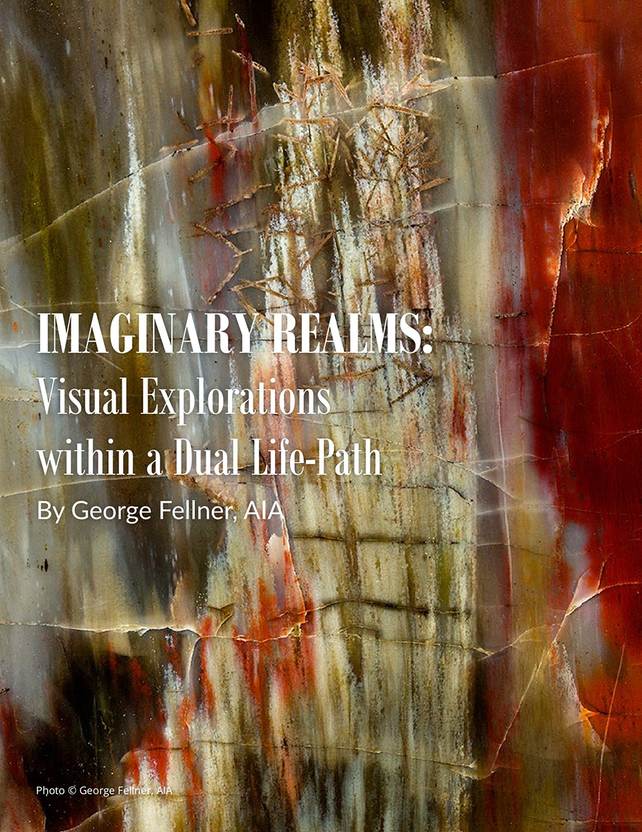 George’s writings encompass his variety of themes including architecture, history, culture, the natural world, and the Imaginary Realms of minerals. His work as both an architect and a fine art photographer demonstrates a bridging of the arts, science, the natural environment, and sustainable design. The blending of visual imagery with the written word can serve as a complementary strategy for creative expression.